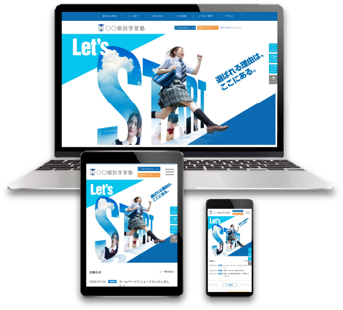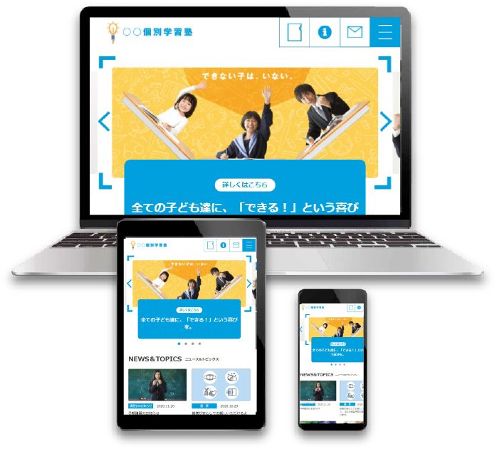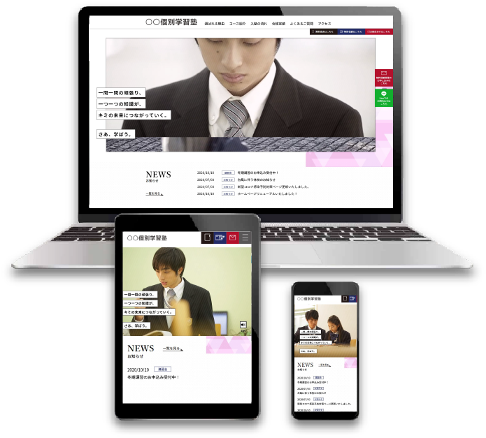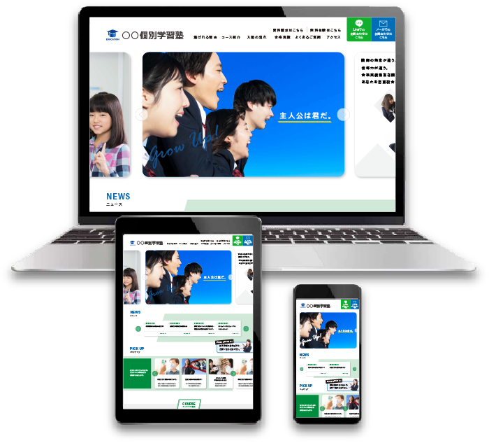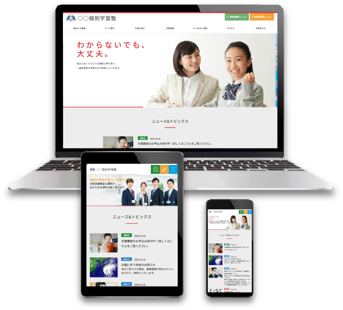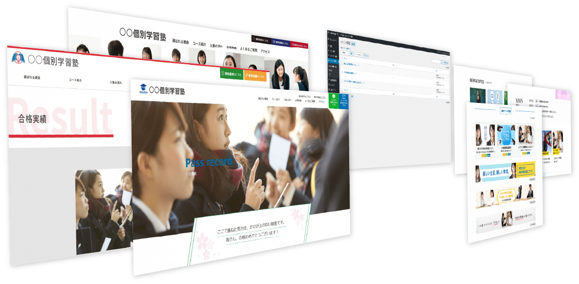 頻繁に更新する「ニュース欄」「トピックス欄」「合格実績ページ」などは、御社内で簡単に更新ができます。