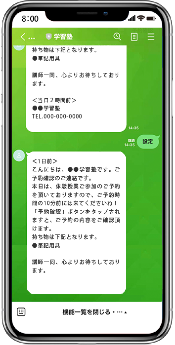 また自動返信も行えるので、塾側の電話や返信の負担も大幅に軽減できます。
