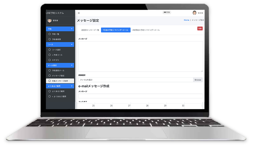 前日か当日の朝にメッセージを自動送信するリマインダー機能を搭載しています。