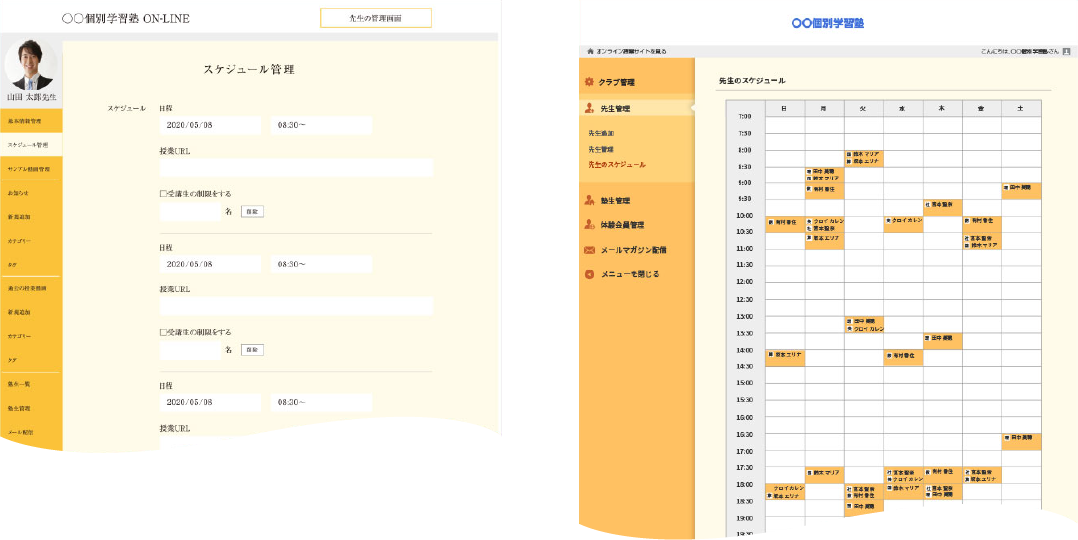 講師紹介ページ&スケジュール管理など、
